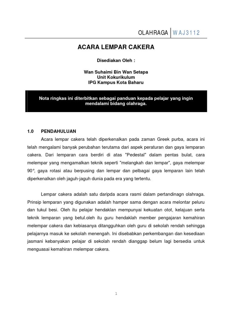Sukan Lempar Cakera In English : Lempar Cakera Lengkap Pdf